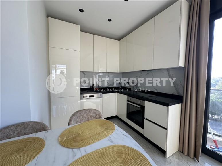 Представляем вашему вниманию современную квартиру формата 1+1 в центре Аланьи. Пространство площадью 53 м² грамотно организовано: спальня и гостиная, совмещённая с кухней, создают атмосферу уюта и комфорта. Апартаменты расположены на 4-м этаже нового жилого комплекса, построенного в 2023 году.