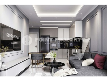 Комплекс, полностью обновленный в 2023 году, расположен в центральной части Аланьи. Квартира площадью 60 м² включает одну спальню, гостиную с кухней по американскому типу, ванную комнату и балкон.