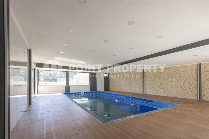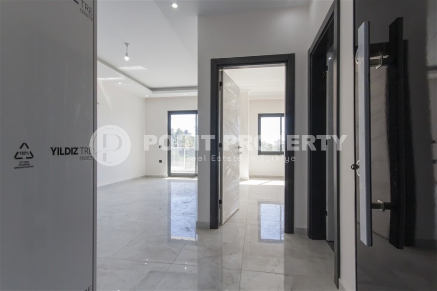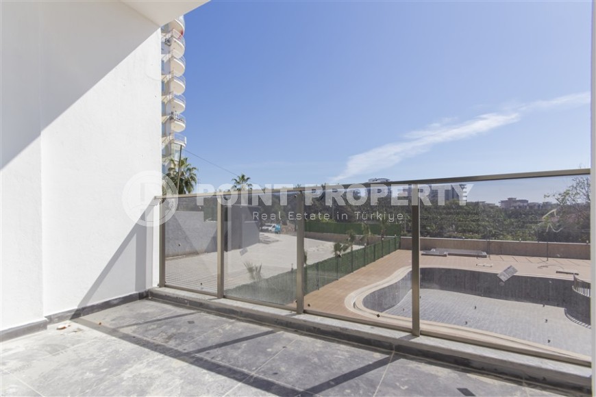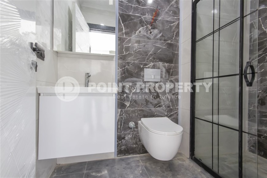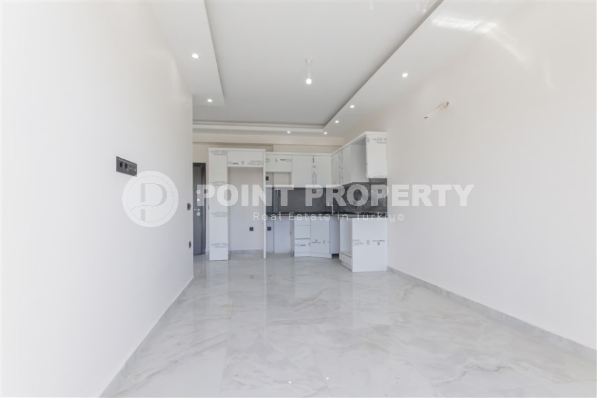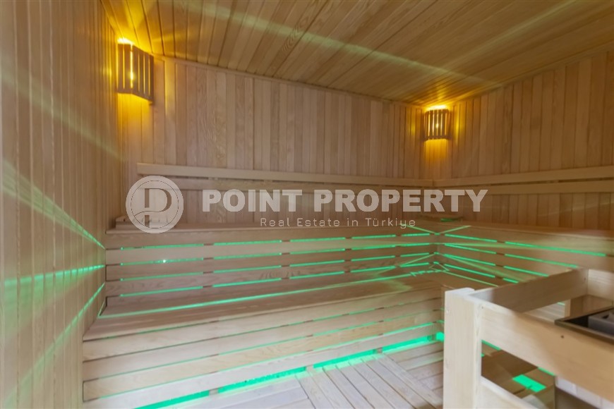 Светлая однокомнатная квартира 55 м² в новом жилом комплексе 2024 года с бассейнами, сауной и фитнесом, всего в 600 м от моря и 300 м от центра.