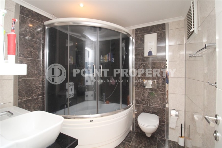 На территории дома, в котором находится данная квартира, к услугам жителей оборудованы бассейн, зал с тренажерами и теннисным столом, сауна, а также разбит тенистый зеленый сад. Расположено здание в двух минутах ходьбы от центра Аланьи, где сосредоточены супермаркеты, бутики, торгово-развлекательные комплексы, рестораны, бары, салоны красоты, отделения банков и связи, остановки общественного транспорта. А всего от 200 метрах от квартиры - роскошный пляж Клеопатры, известный своим золотистым прохладным песком, кристально чистой лазурной водой, и красивейшей прогулочной набережной, с велодорожками, детскими и спортивными площадками, уютными беседками и многочисленными зонами отдыха.