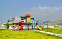 Комплекс расположен в 3000 метрах от моря и в 1500 метрах от центра, обеспечивая спокойную атмосферу и доступ ко всем необходимым удобствам.