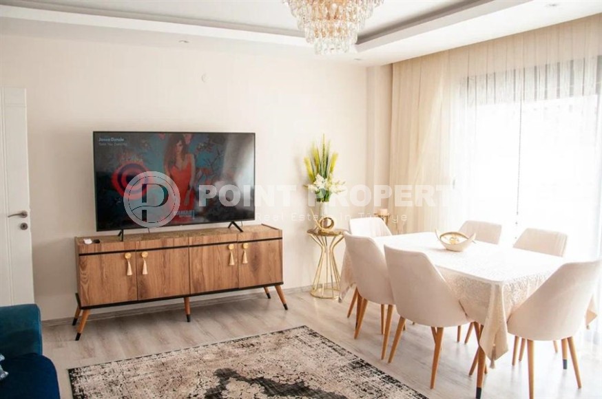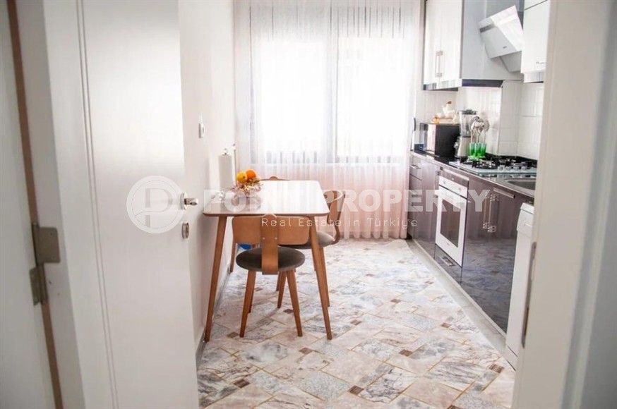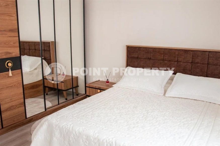 Дом, в котором находится данная квартира, оснащен лифтом и камерами видеонаблюдения. На прилегающей территории разбит зеленый сад и оборудован паркинг. Расположено здание в нескольких минутах ходьбы от центра Аланьи, где наряду с привычными супермаркетами, пекарнями, кафе, отделениями банков и связи, есть модные бутики, современные фитнес клубы, салоны красоты, частные и государственные клиники, детские образовательные учреждения. А всего в 650 метрах от квартиры раскинулся красивейший песчаный пляж, с кристально чистой лазурной водой и живописной прогулочной набережной, с детскими и спортивными площадками, зелеными лужайками и благоустроенными зонами отдыха.