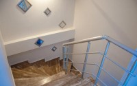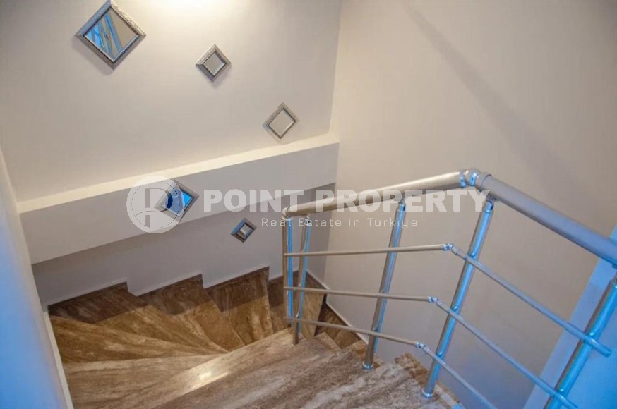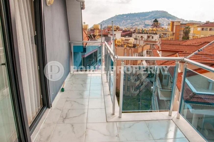 На продажу выставлена большая двухуровневая квартира, которая наверняка придется по вкусу тем, кого вдохновляют панорамные виды, и тем, кто предпочитает современные дизайны, просторные планировки и светлые интерьеры. Дуплекс 2+1, общей площадью 240 м2, расположен на 5-м этаже с мансардой, в доме 2020 года постройки, в самом центре Аланьи. В планировке квартиры - отдельная кухня, салон, две спальни, два санузла, три балкона и открытая терраса, с видом на город и гору Кале. Дизайн комнат - современный и лаконичный, светлый интерьер удачно дополняют со вкусом подобранные предметы декора и комфортабельная мебель. Просторная гостиная, с роскошной люстрой, укомплектована диванами, глубокого цвета морской волны, креслами, тумбой и большим обеденным столом, с мягкими стульями. Практичная кухня оснащена холодильником, посудомоечной машиной и духовым шкафом, а в уютных спальнях установлены комфортабельные кровати, тумбы, гардеробные шкафы и стильный туалетный столик.