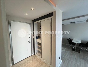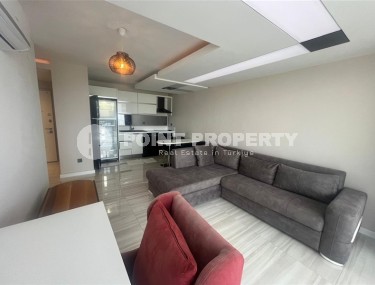 Светлая квартира 1+1 с одной ванной комнатой и застекленным балконом в комплексе с богатой инфраструктурой, в 900 метрах от моря и всего в 700 метрах от центра района.