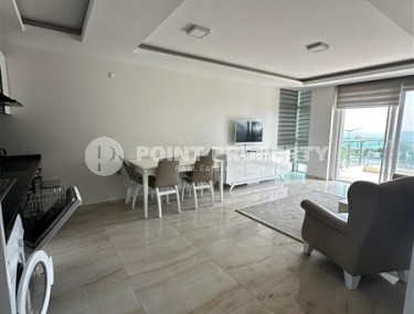 Уютная квартира 1+1 площадью 65 м² с 1 спальней, гостиной с кухней по американскому типу, балконом, всего в 50 м от моря и 100 м от центра Кестеля.