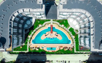 Жилой комплекс состоит из двух 12-этажных зданий, расположен на охраняемой закрытой территории. Имеет обширную как внутреннюю, так и внешнюю инфраструктуру, способную удовлетворить любые пожелания собственников и гостей резиденции. Плата за пользование инфраструктурой и ее содержание (айдат) составляет 500€ в год.