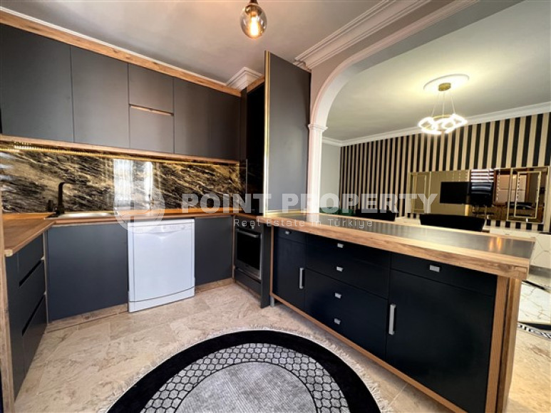 Стильные апартаменты с дизайнерским ремонтом на самом берегу моря в центре района Махмутлар.