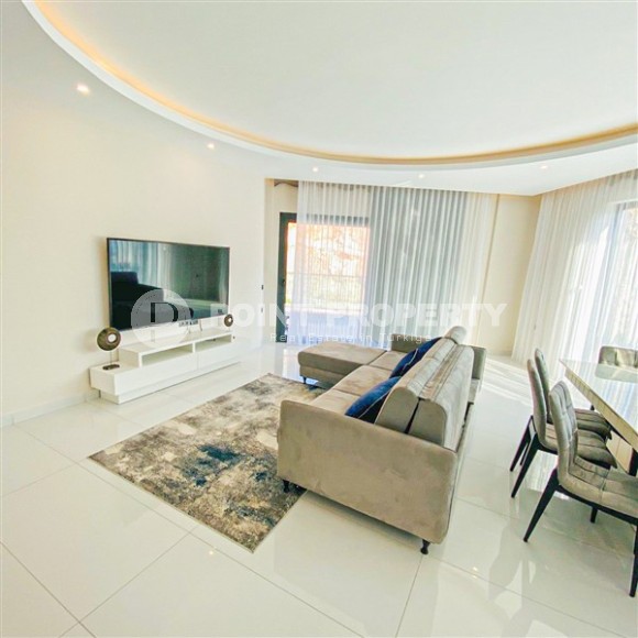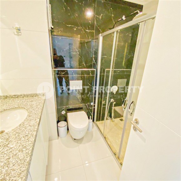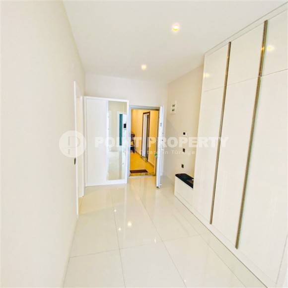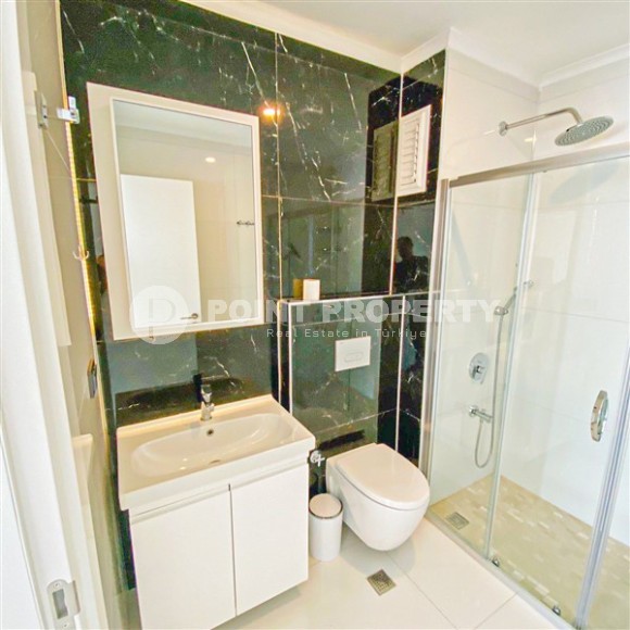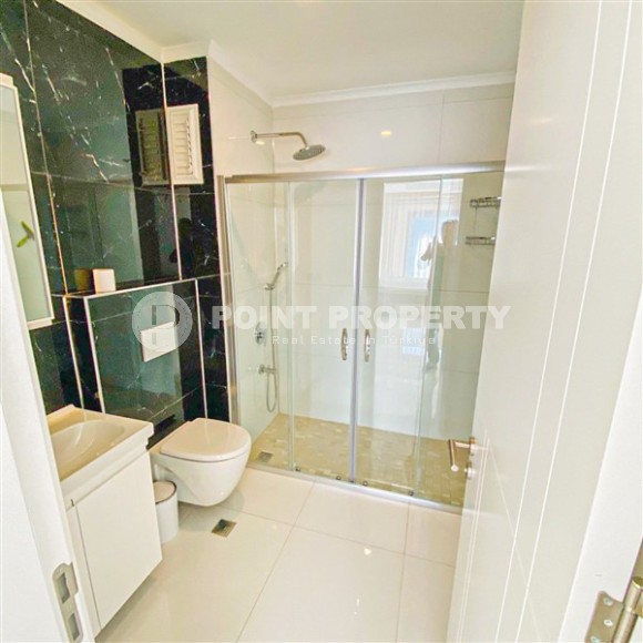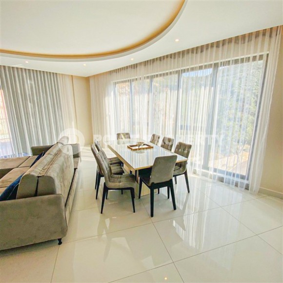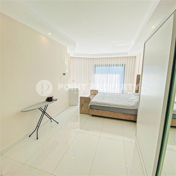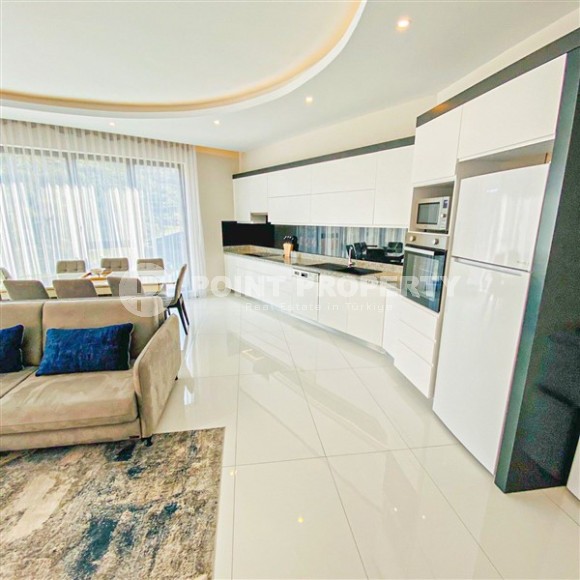 Престижный район Аланьи - Каргыджак - идеальное место для тех, кто ищет тишину, спокойствие, живописные ландшафты, величественные горные панорамы и кристально чистое море. Если вы относите себя к числу таких людей, предлагаем вашему вниманию комфортабельную современную квартиру на первой линии от моря, в нескольких минутах ходьбы от центра этого благоустроенного района. Просторная для планировки 2+1, общей площадью 110 м2, она расположена на 1-м этаже в жилом комплексе, построенном в 2021 году и состоит из совмещённой с кухней гостиной, двух спален, двух укомплектованных душевыми кабинами санузлов и открытого балкона с потрясающим видом на зелёные горные склоны. Дизайн апартаментов выполнен в стиле минимализм, в основе интерьера - белый цвет, создающий ощущение лёгкости и свежести. Гостиная визуально разделена на салон, с комфортабельным угловым диваном и тумбой; и зону кухни, с обеденным столом, мягкими стульями и функциональным гарнитуром, оснащенным холодильником, посудомоечной машиной, сенсорной поверхностью и духовым шкафом. Спальни укомплектованы большими кроватями, комодом, гардеробным шкафом и компактным диваном, а при входе установлен вместительный шкаф для обуви и верхней одежды.