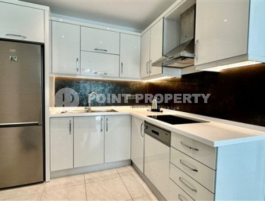 Портфолио компании Point Property пополнило выгодное предложение - готовая к проживанию квартира у моря в комплексе с отельной инфраструктурой, по очень привлекательной цене. Просторная для планировки 2+1, общей площадью 110 м2, она состоит из американской кухни открытого типа, совмещенной с гостиной, двух спален, двух санузлов и двух балконов с видом на зеленый сад и внутренний двор резиденции с бассейном. Квартира - светлая и уютная, с теплыми оттенками в интерьере, мягким освещением, современными картинами, комфортабельной мебелью и всей необходимой бытовой техникой. Гостиная условно разделена на две функциональные зоны - салон, с массивным диваном, креслами, журнальным столиком и гарнитуром; и кухню, с обеденным столом и практичной рабочей поверхностью, укомплектованной холодильником, стиральной и посудомоечной машинами, газовой плитой и духовым шкафом. В спальнях установлены комфортабельные кровати, тумбы и вместительные гардеробные шкафы, а при входе имеется дополнительный шкаф для обуви и верхней одежды. Из гостиной есть выход на открытый балкон, где организована уютная зона отдыха компактной садовой мебелью.