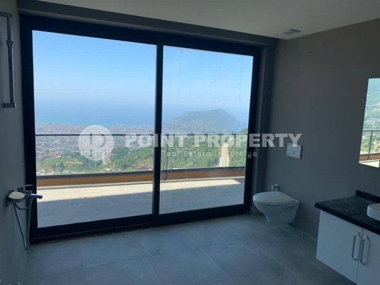 В данном случае планировка 5+1 предполагает наличие пяти просторных спальных комнат, из которых одна имеет большую гардеробную, просторную гостиную, совмещенную с кухней открытого типа, которые довольно грамотно зонированы, шесть санузлов, пять из которых полноценные ванные комнаты с видом на море и крепость Алании, и две большие террасы.