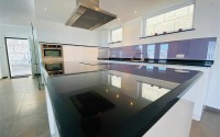 Большая 3-этажная вилла, представленная в данном разделе - отличный вариант для тех, кто предпочитает проводить время с семьей в спокойной атмосфере, в окружении живописных горных панорам, хвойных лесов и цитрусовых садов. Расположена она на холме, откуда открываются потрясающие панорамные виды на море, в престижном районе Аланьи - Каргыджак. Общая площадь дома - 330 м2, планировка 5+2 представлена двумя совмещенными с кухнями гостиными, пятью спальнями, четырьмя санузлами, оснащенными душевыми кабинами и джакузи, балконом и двумя открытыми террасами. Кроме того, на вилле имеются сауна, прачечная, кладовая и крытый паркинг. Дизайн комнат - современный и лаконичный, с преобладанием белого цвета в интерьере и яркими акцентами в виде современных картин и стильных предметов декора. В гостиной на 1-м этаже организована комфортабельная рекреационная зона, с белоснежными диванами, журнальным столиком и шкафом с открытыми полками. Модная американская кухня с островом оснащена по последнему слову техники и наверняка придется по душе любой хозяйке. В спальнях установлены комфортабельные кровати и гарнитуры, в салоне на 2-м этаже - практичная удобная мебель, а в одной из комнат оборудован кинозал.