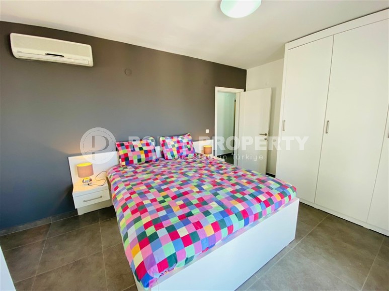Меблированная линейная квартира с тремя спальнями, потрясающим видом на Средиземное море в элитном комплексе на берегу горной реки в районе Алании - Тосмур