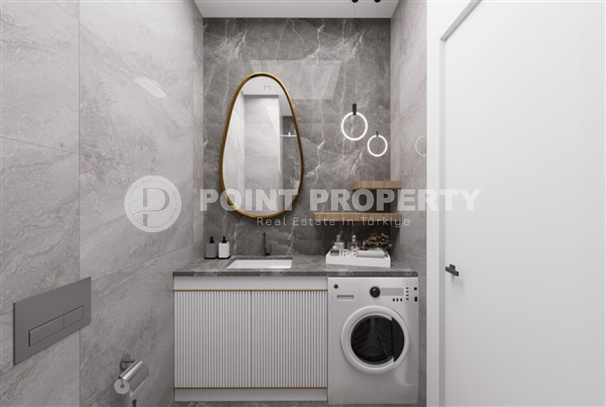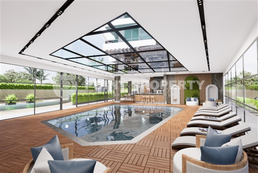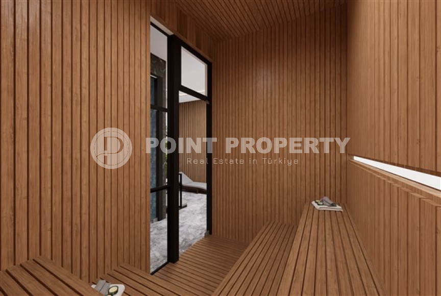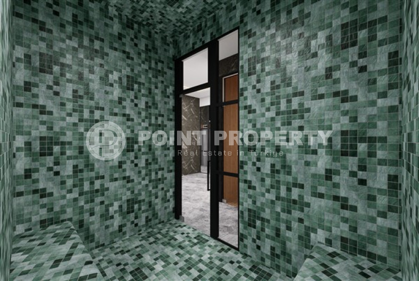 Все апартаменты сдаются с готовой финишной отделкой, кухонными гарнитурами и полностью оборудованными ванными комнатами. Разнообразная инфраструктура делает проект инвестиционно привлекательным: сад, бильярд, лобби, крытый и открытый бассейны, бар у бассейна, зона для приготовления барбекю, детская площадка на территории и детская игровая внутри комплекса, беседки для отдыха, джакузи, римская парная, хамам, сауна, фитнес-зал, автопарковка.